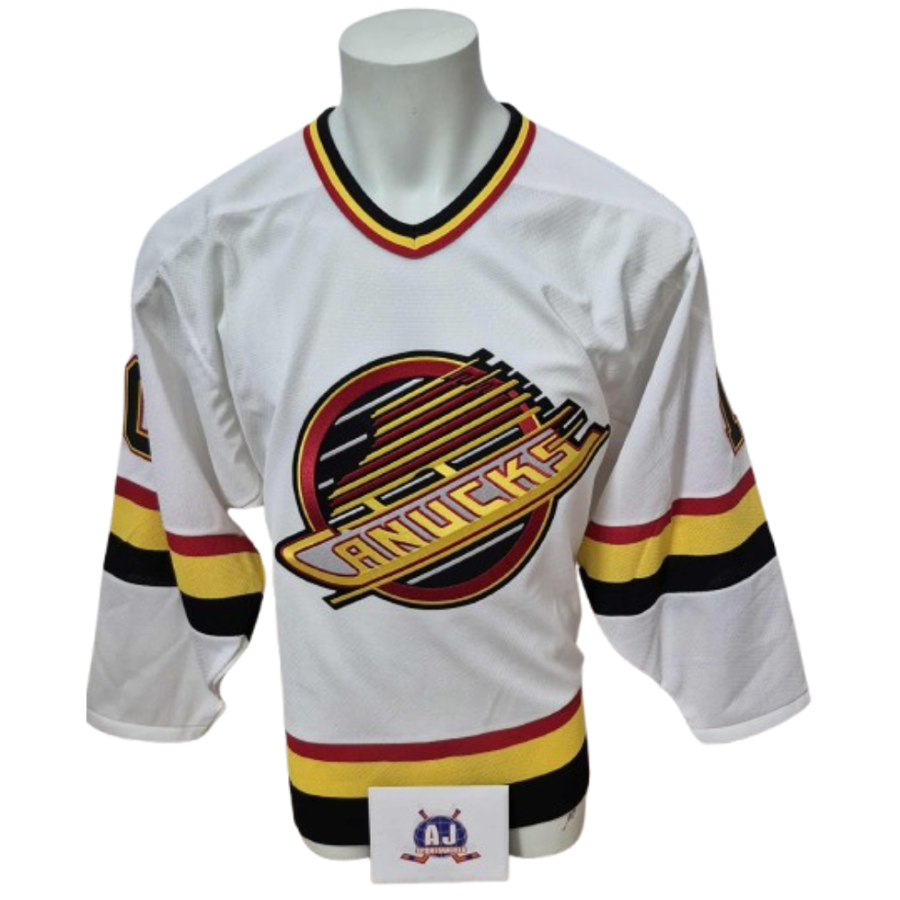 Chandail CCM Flying Skates vintage blanc, autographié par Pavel Bure
