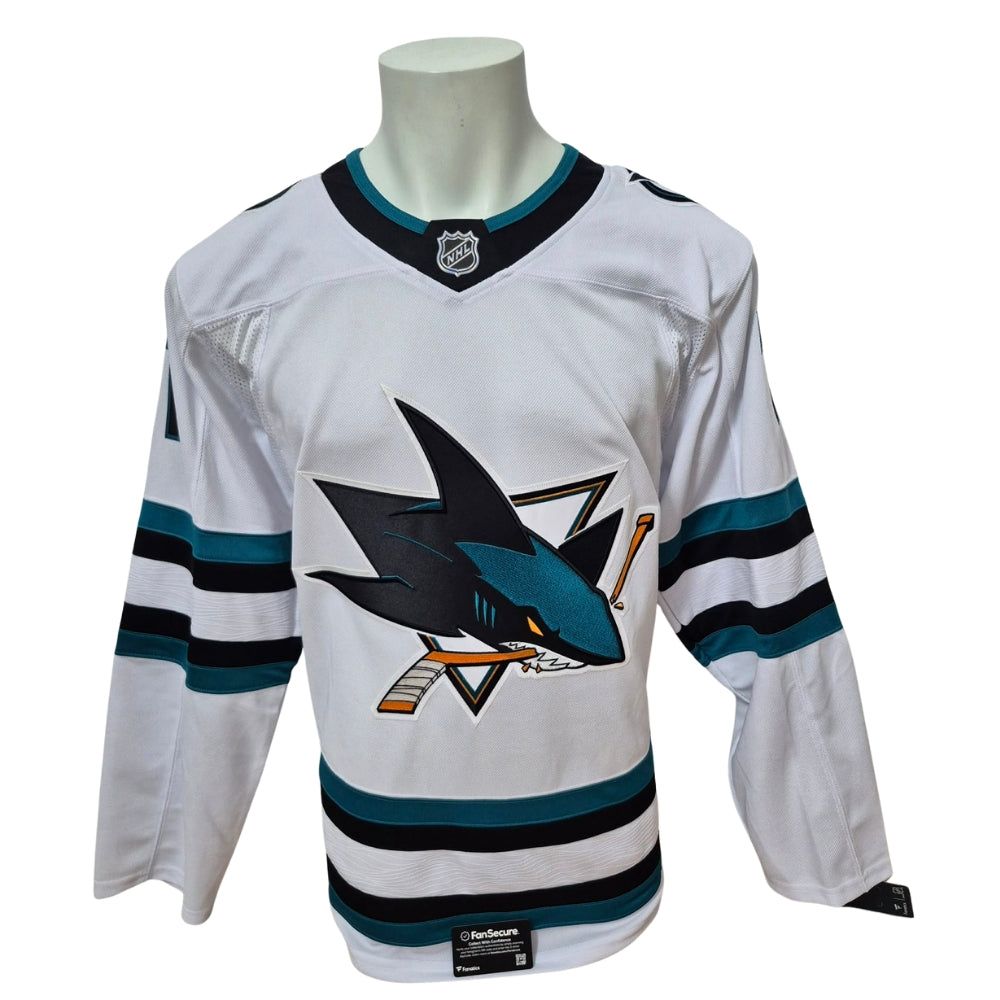 Chandail officiel Fanatics Premium signé - Macklin Celebrini visiteur Fanatics coa